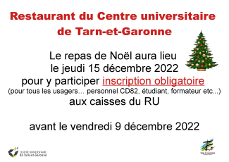 Envoyer cette page à un ami × Campus Repas de Noël au Restaurant du Centre universitaire Retour à la liste